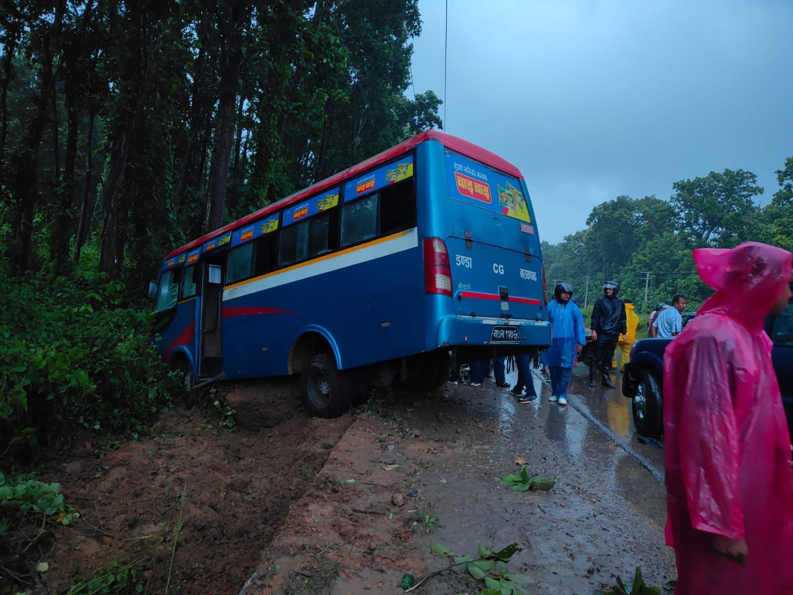 नवलपुर १८ साउन । कावासोतीबाट नारायणगढ जाँदै गरेको ना ७ ख १५७६ नम्बरको बस आज साँझ ७ बजेतिर कावासोती ८ स्थित पूर्वपश्चिम राजमार्गमा दुर्घटना भएको हो ।